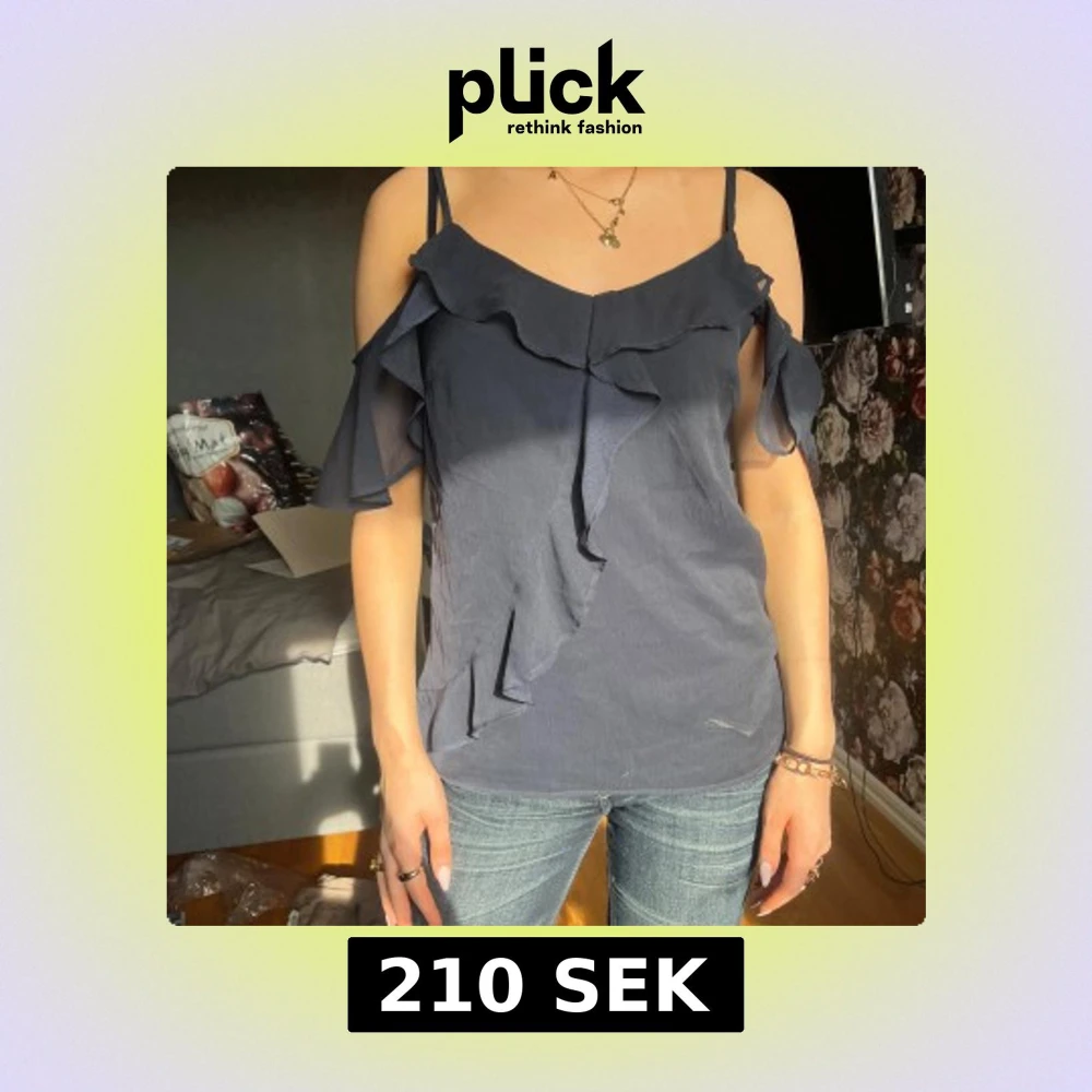Säljer en mörkblå volangtopp med smala axelband i storlek xs från vero moda🥰