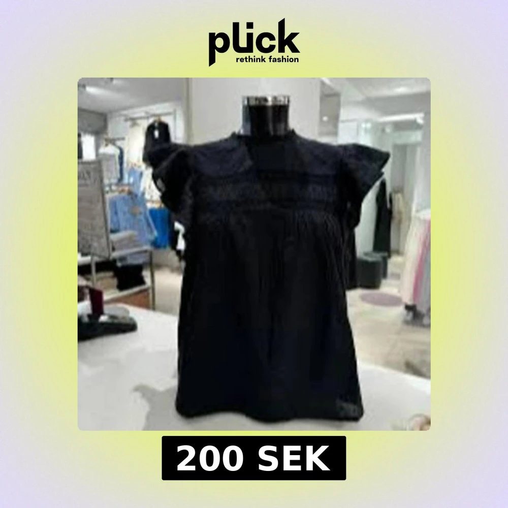 Supersöt svart blus med volangiga korta ärmar och broderade detaljer över bröstet. Toppens tyg har små prickar i strukturen och en lätt rynkad effekt. Perfekt för dig som gillar en romantisk och luftig stil.