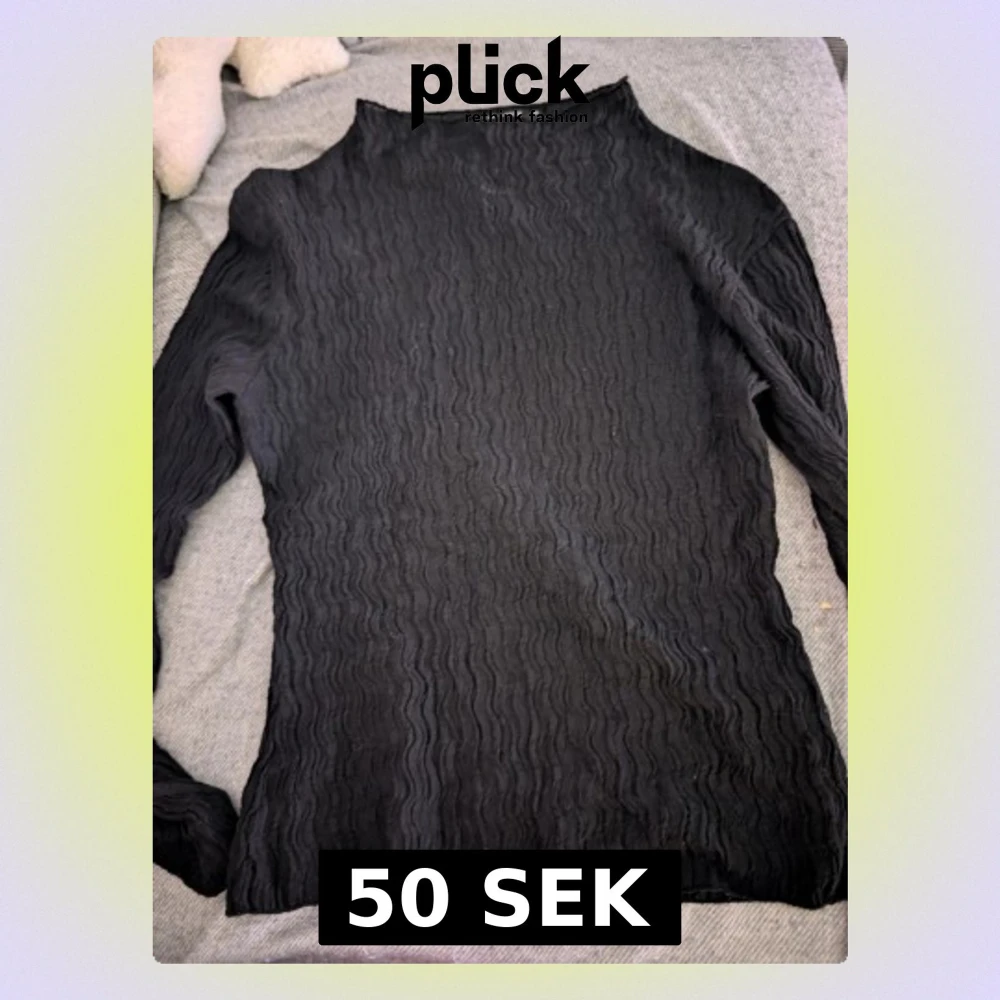 Säljer en svart långärmad topp med ribbad struktur och vågigt mönster i tyget. Tunt och stretchigt material som sitter snyggt på kroppen. Perfekt att styla med jeans eller kjol för en trendig look.