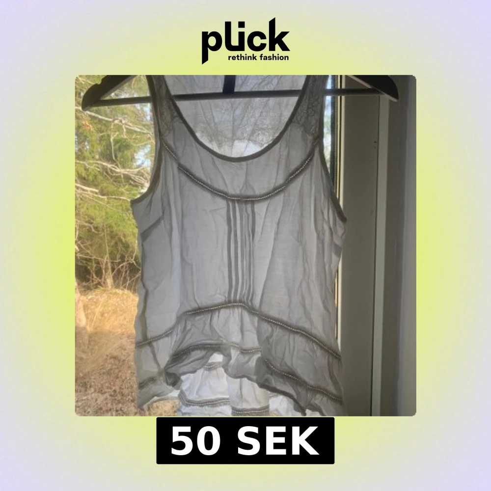 Säljer en luftig vit ärmlös topp med spetsdetaljer vid axlarna och dekorativa sömmar. Toppen har en lätt volang vid nederkanten och är perfekt för varma dagar.