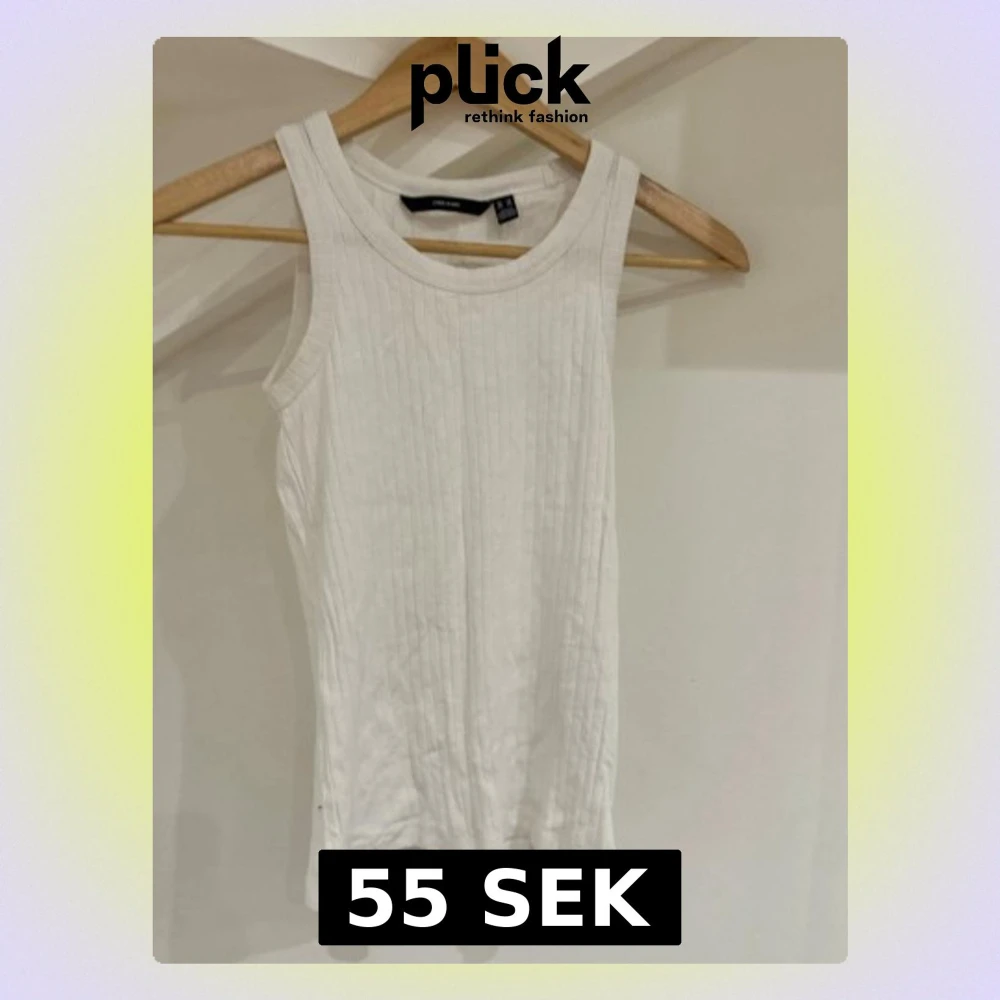 Säljer en enkel och stilren vit ribbad linnetopp från Vero Moda i storlek XS. Toppen är ärmlös med rund halsringning och har en tight passform. Perfekt att matcha med jeans eller kjol för en clean look.