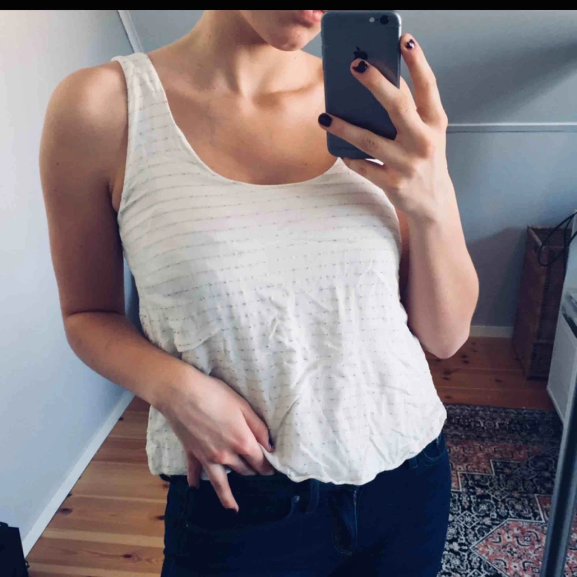 Fint Linne med guldiga glitterlinjerđ lite skrynkligt pĂ„ bilden men det Ă€r bara att strykađ Frakt 25kr