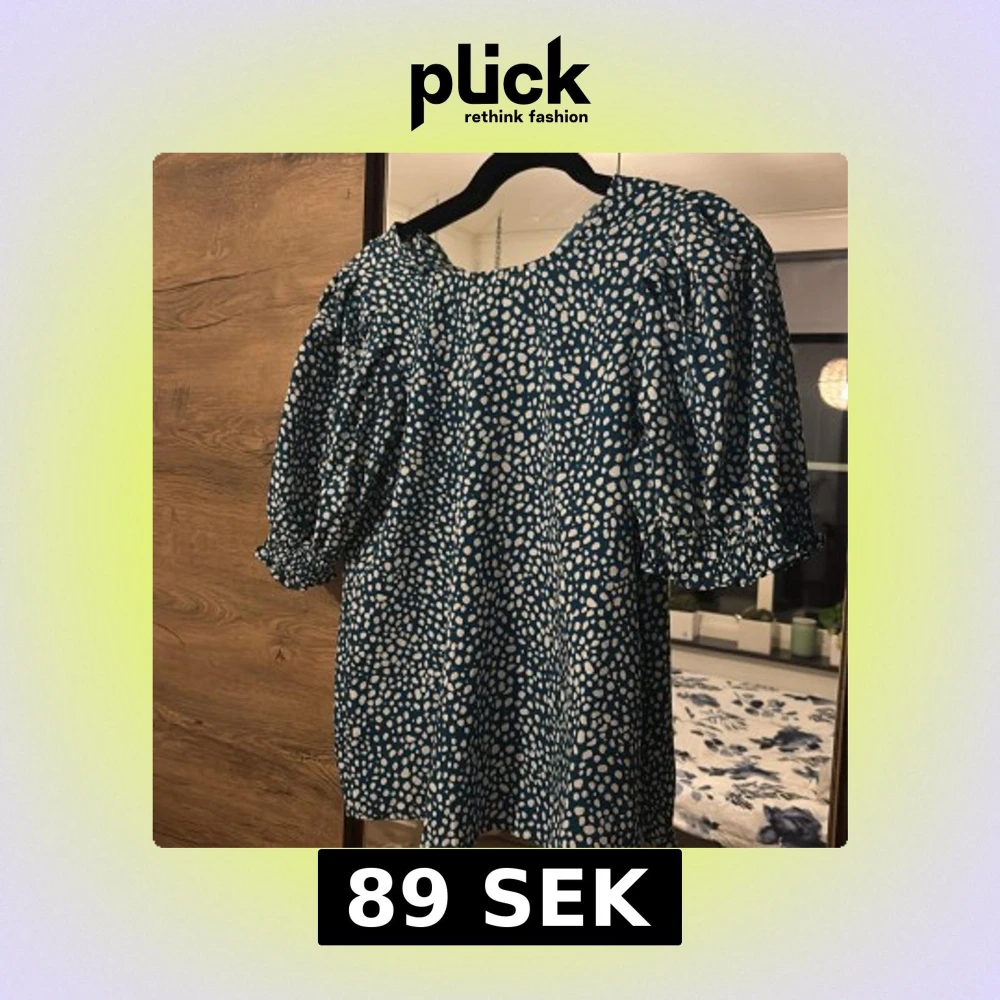 Säljer en blå/ mörk turkos blus med vita prickar och puffiga korta ärmar med resår vid ärmslut. Knappt använd så mycket fint skick🥰