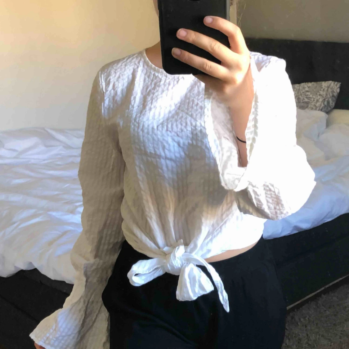 Vit tröja med knyte där fram som gör att man kan knyta den löst eller tight beroende på vad du själv vill ha! Knappar där bak högst upp.
