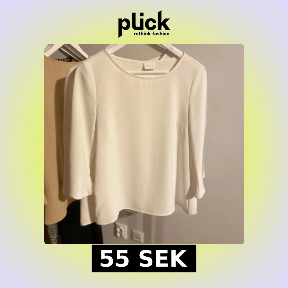 Elegant vit blus från Vila med trekvartsärm och rund halsringning. Perfekt för en stilren look.