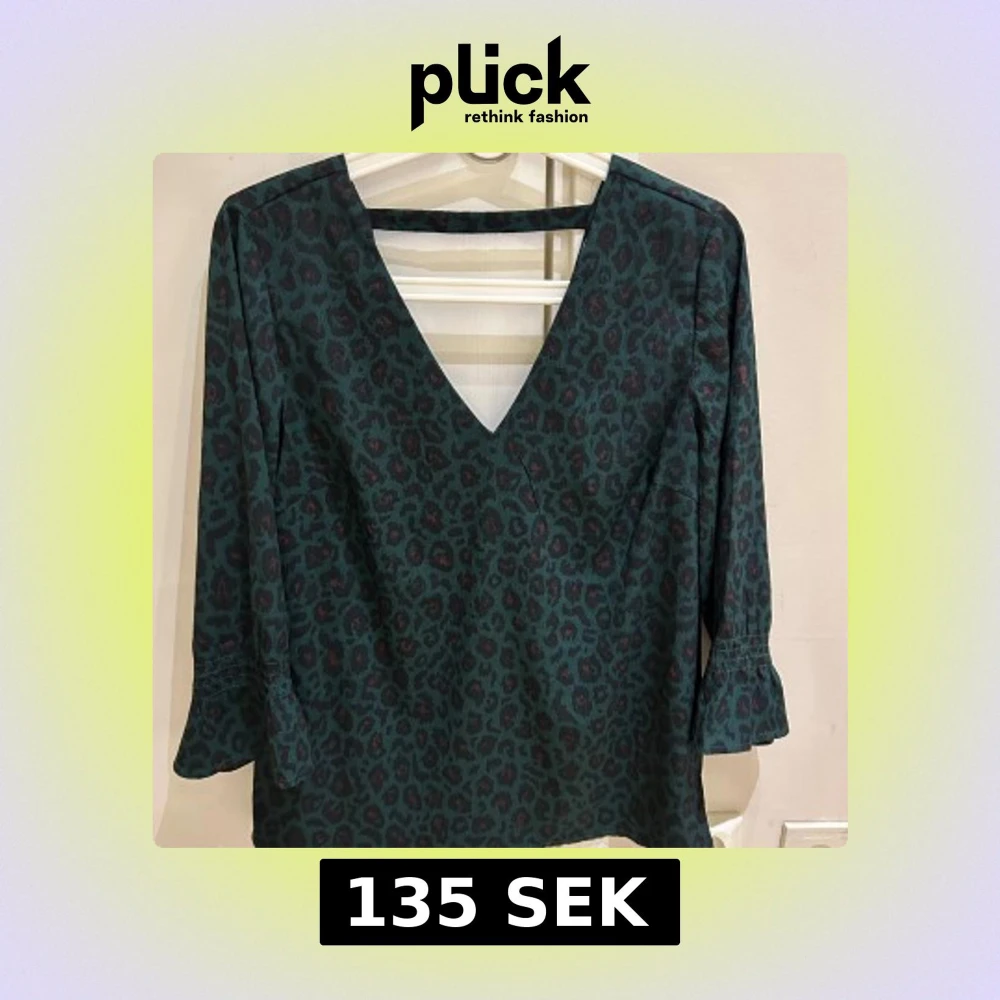 Säljer en grön blus från VILA med leopardmönster i mörka toner. Blusen har v-ringning, trekvartsärmar med lätt volang och smockdetalj vid ärmslut. Materialet är mjukt och lätt, perfekt för dig som gillar att sticka ut med coola mönster.