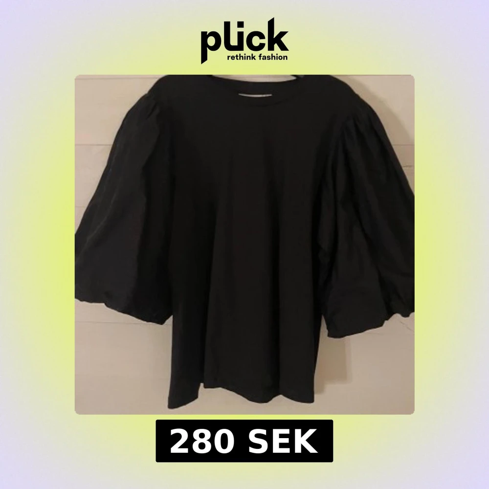 Svart topp från Vila med riktigt stora puffärmar som ger en cool och trendig siluett. Rund halsringning och rak passform. Perfekt för dig som vill sticka ut lite extra med en enkel men snygg look.