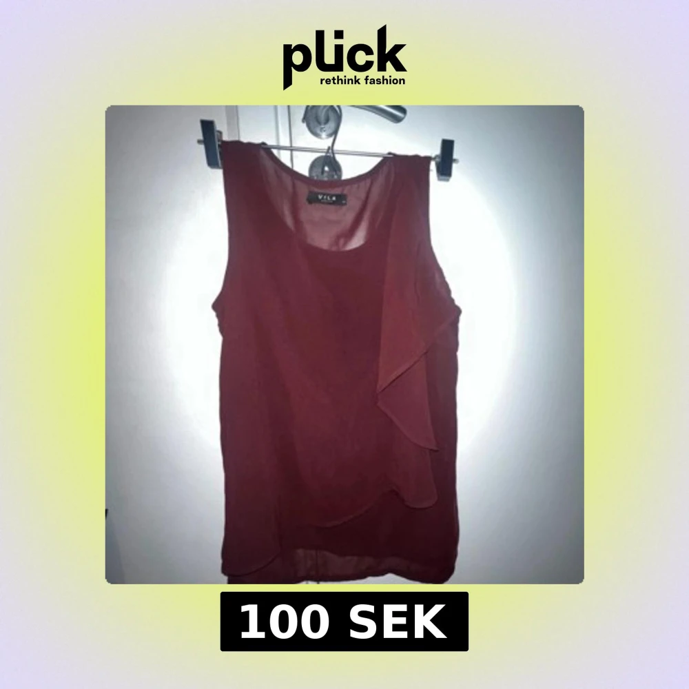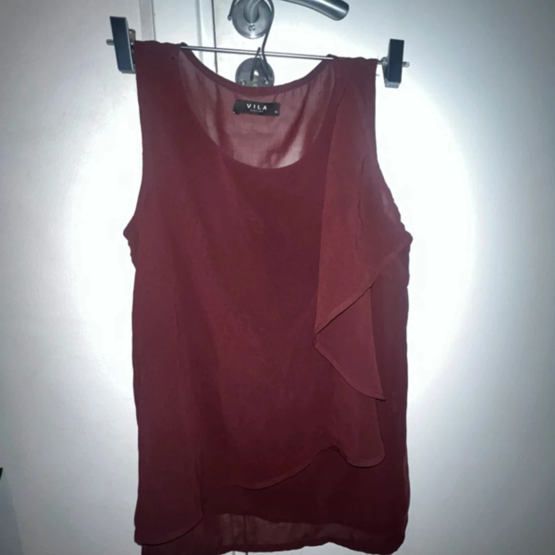 Säljer en vinröd ärmlös blus från Vila med snygga lager på framsidan som ger en stilren look. Perfekt att matcha med jeans eller kjol för en trendig outfit.