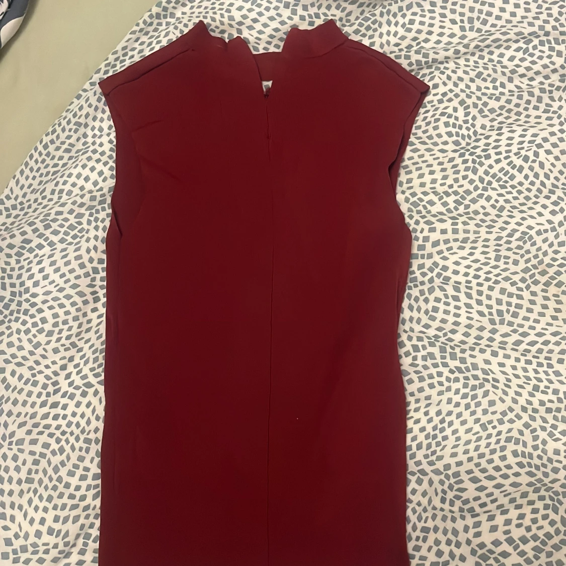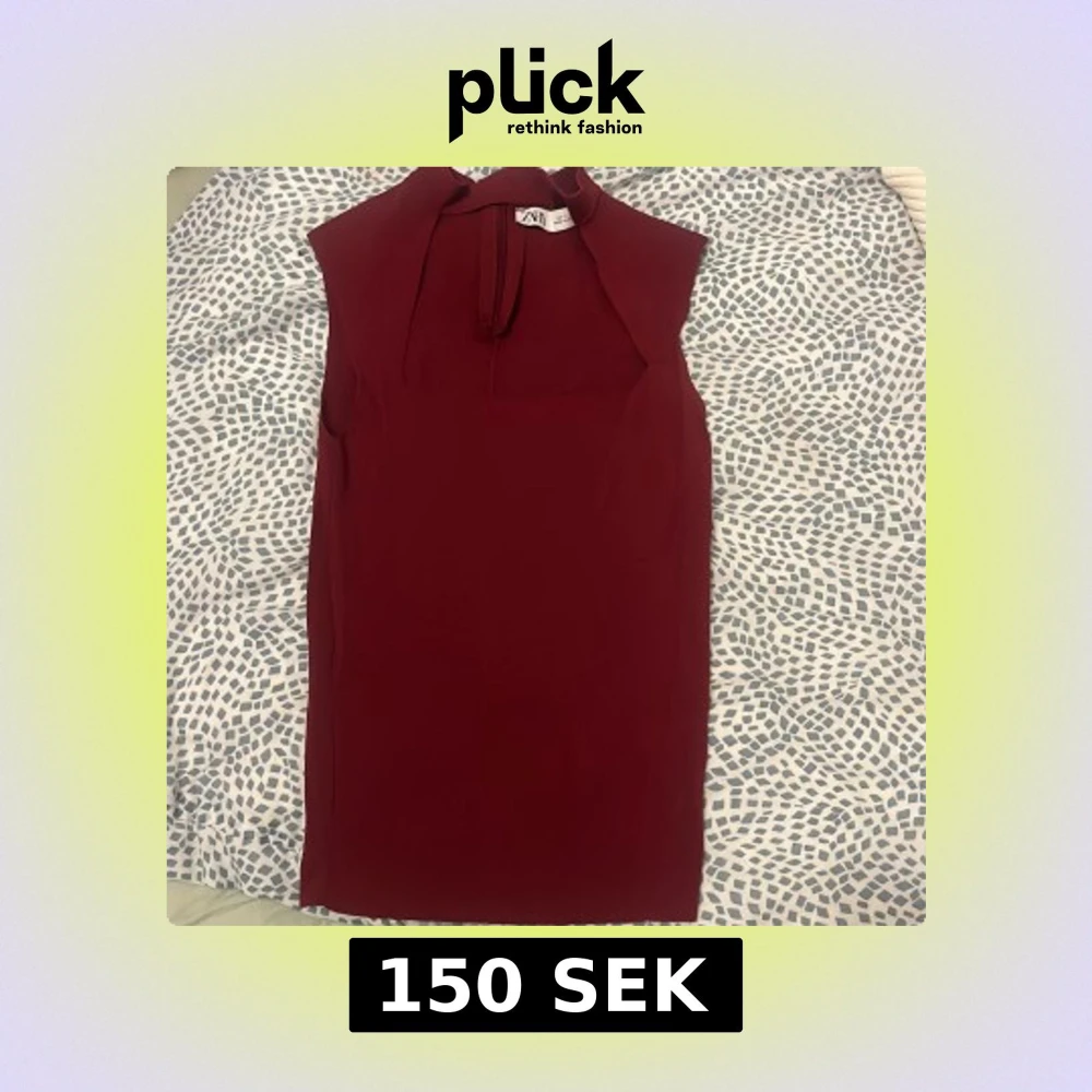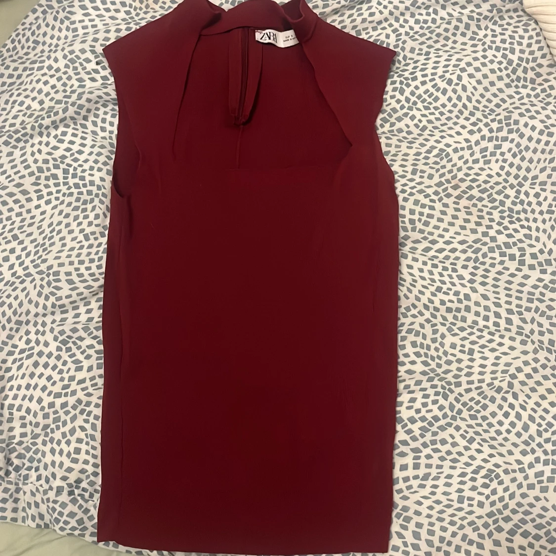 Snygg vinröd topp från Zara med hög krage och ärmlös design. stilren, figurnära passform som ger en elegant siluett. Perfekt för dig som gillar minimalistisk stil och vill sticka ut med en djup röd färg.