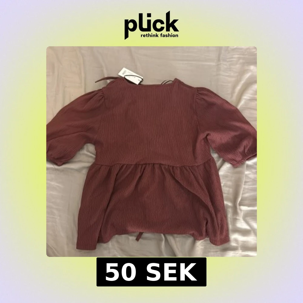 Supersöt vinröd blus med puffiga trekvartsärmar och lätt rynkad nederdel. Blusen har en avslappnad passform och är gjord i ett mjukt, strukturerat tyg som ger en snygg look. Perfekt att styla med jeans eller kjol för en trendig vibe.