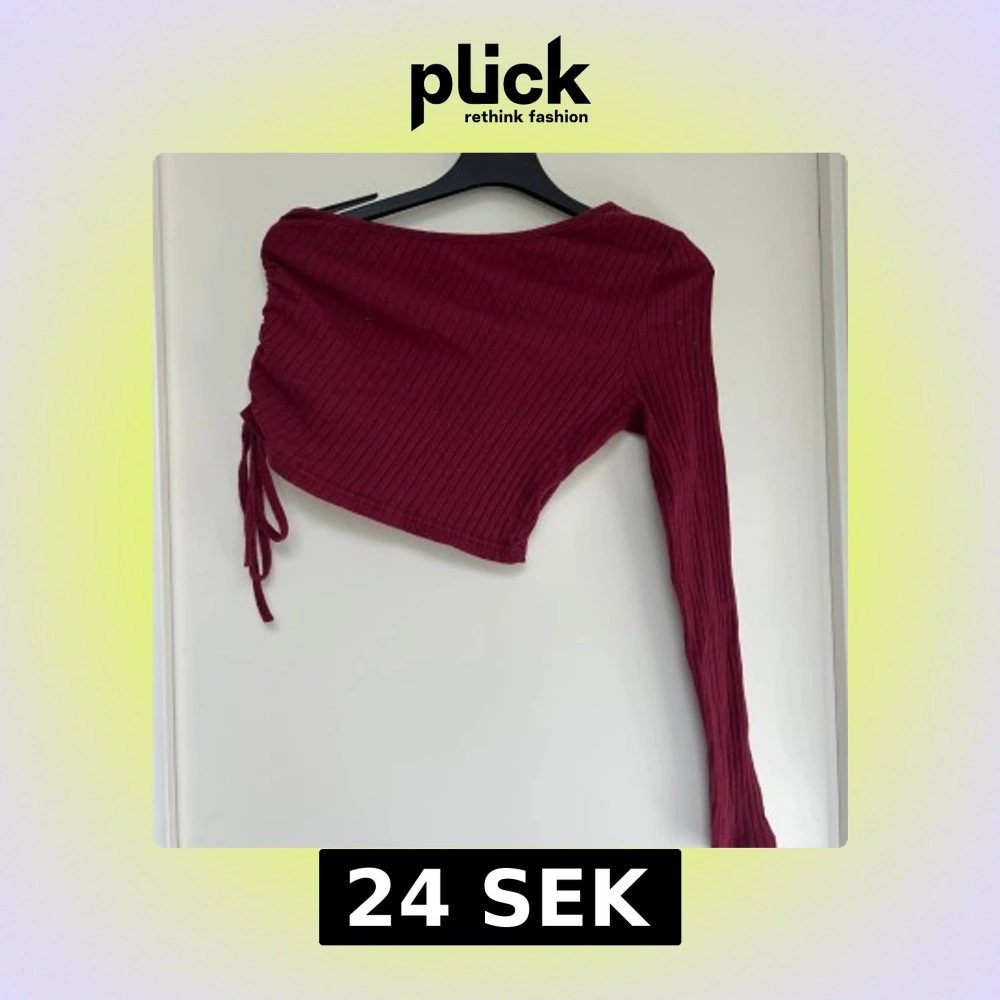 Trendig vinröd ribbad topp med oneshoulder-design och lång ärm. Toppen är croppad och har snygg snörning i sidan för en cool, asymmetrisk look.