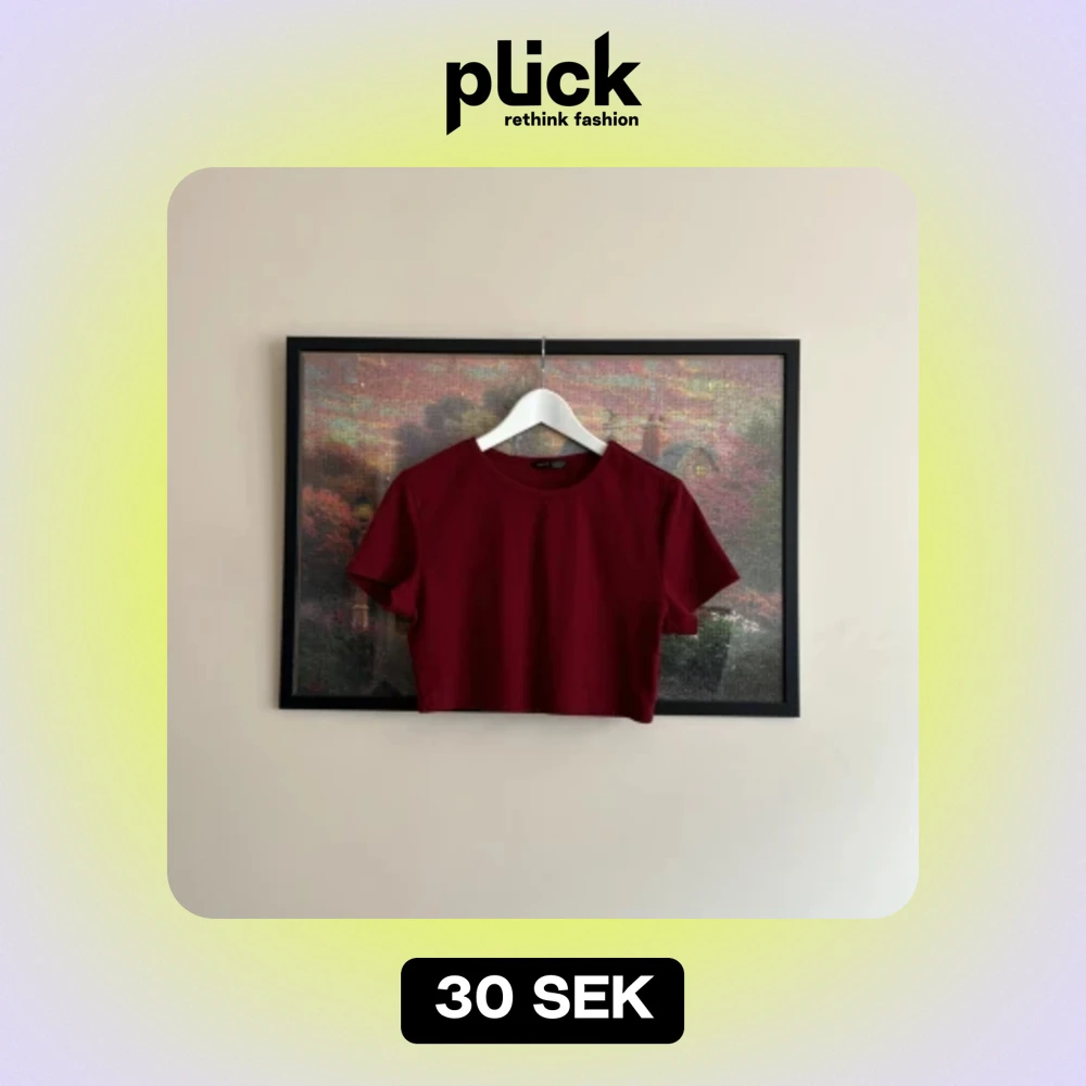 Vinröd croptop från SHEIN i storlek L (passar även S och M). Knappt använd. 🌸
