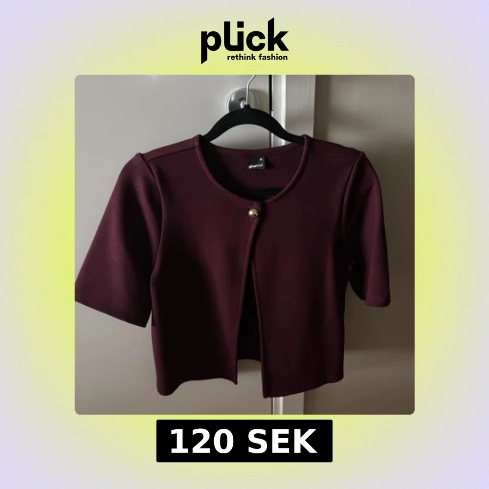 Snygg vinröd topp från Gina Tricot med en elegant knapp framtill. Det är rekvartsärm och en stilren design. Perfekt för att lyfta vilken outfit som helst