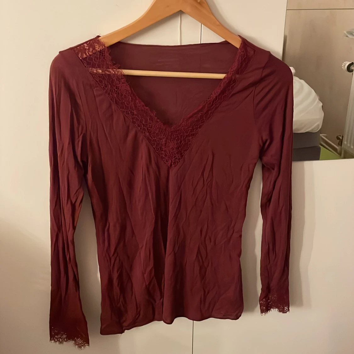 Vinröd långärmad topp med v-ringning och fina spetsdetaljer från intimissimi. Använd fåtal gånger men är i jättebra skick.