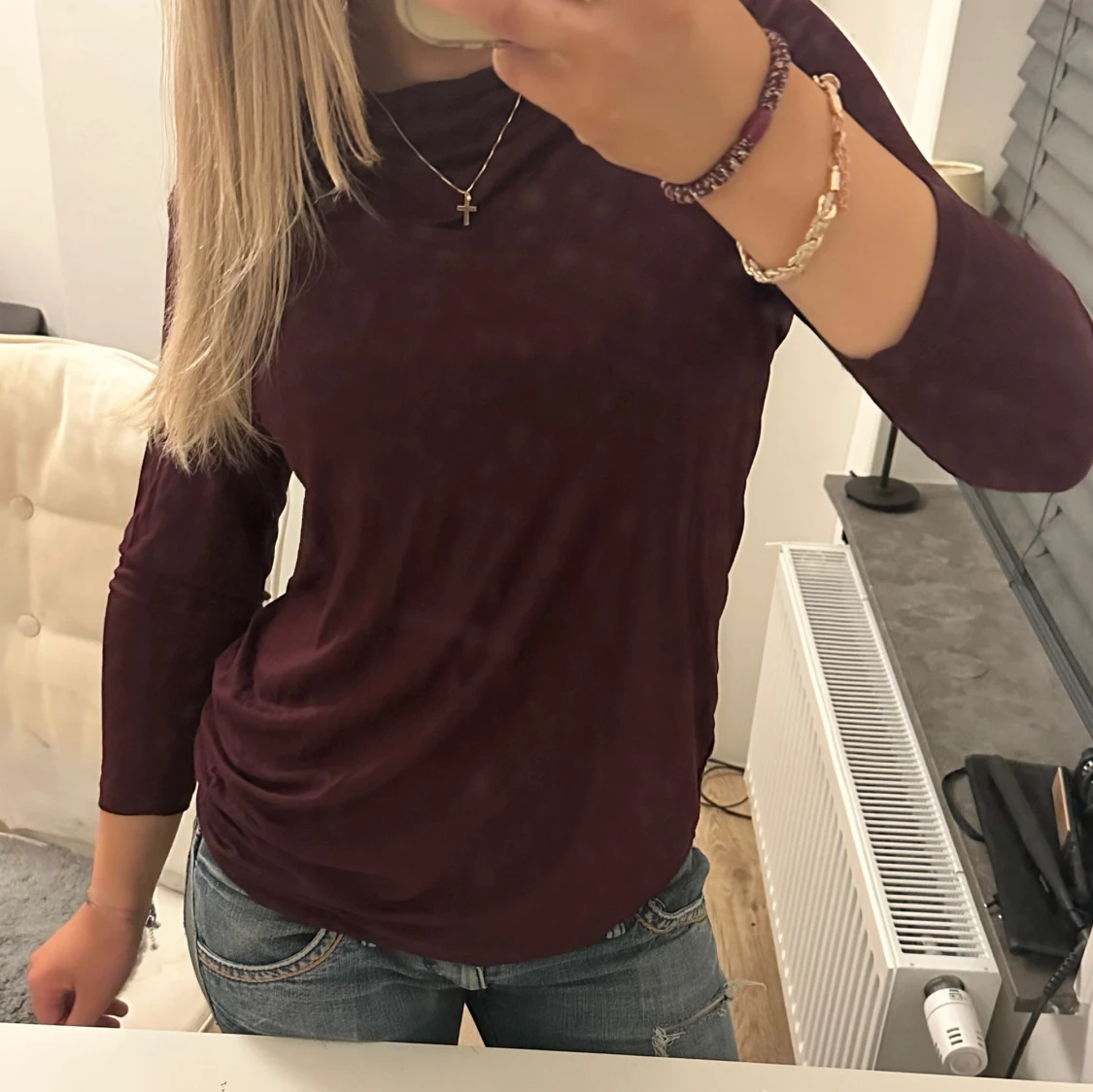 Säljer en jättesnygg vinröd långärmad topp med draperad halsringning. Modellen är rak och lite loose fit. Säljer då den inte kommer till användning. Vet inte vart den är ifrån. Aldrig använd, pris kan diskuteras!