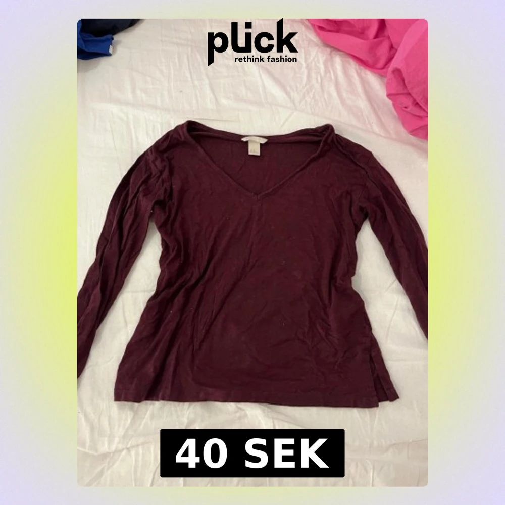 Vinröd långärmad topp från H&M Basic i mjuk bomull. Toppen har v-ringning och en enkel, klassisk design som passar till det mesta. Perfekt att styla med jeans eller kjol för en avslappnad look.