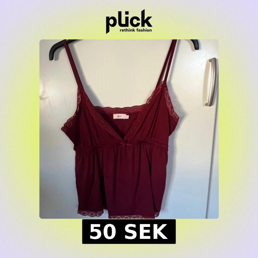 Supersöt vinröd linnetopp från Nelly med tunna axelband och spetsdetaljer längs urringning och nederkant. Toppen har en liten rosett framtill och är lätt utställd för en avslappnad look. Perfekt att styla med jeans eller kjol.