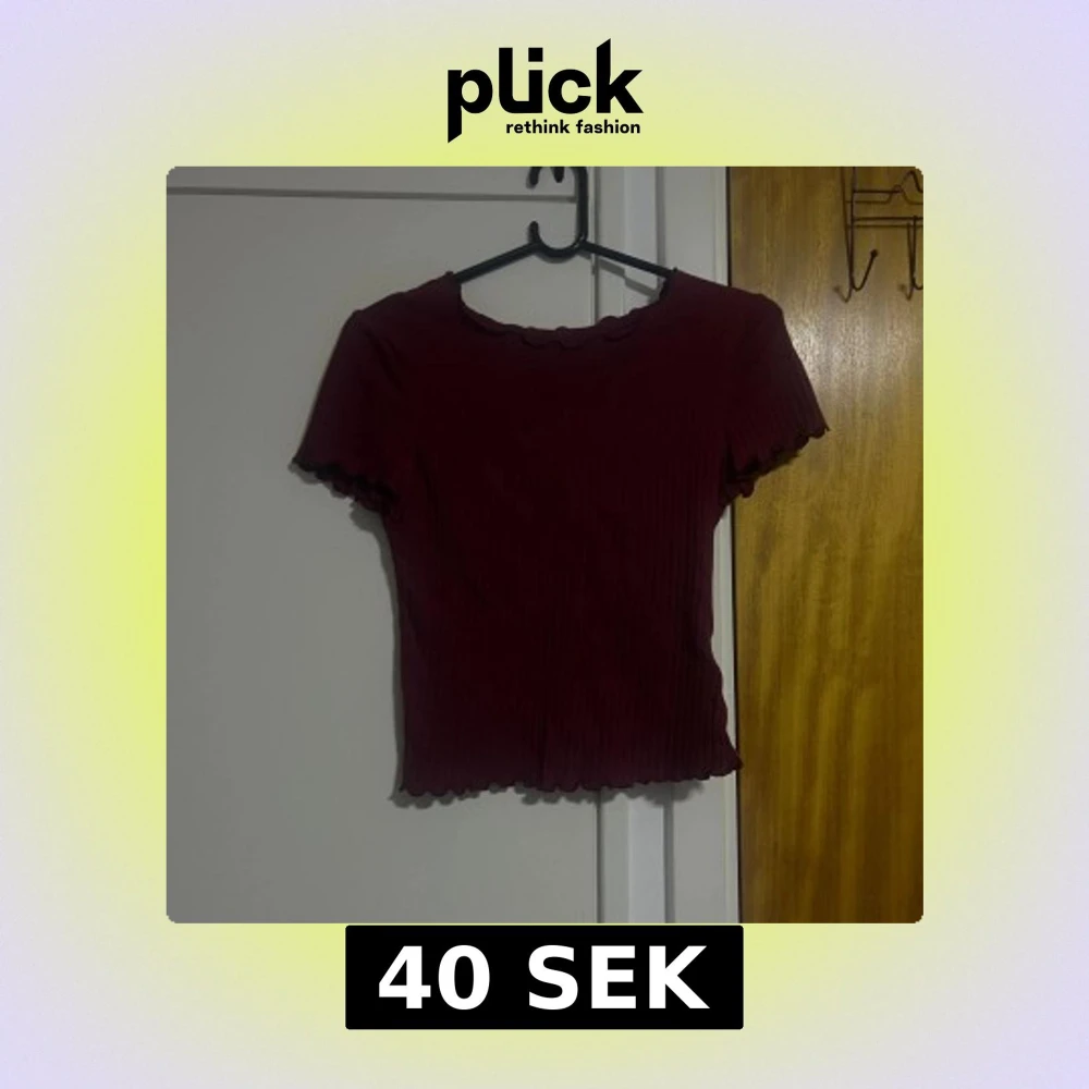 Säljer en vinröd croppad topp med korta ärmar och ribbad struktur. ❤️❤️