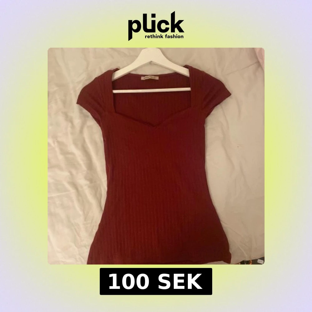 Säljer en vinröd ribbad topp från Anna Field med korta ärmar och snygg v-ringning. Skriv för fler frågor storleken är xs/s men stretchigt material