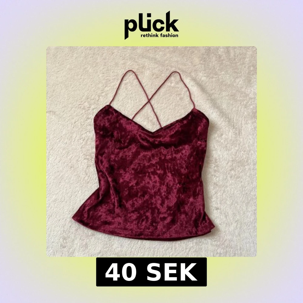 Snygg vinröd sammetstopp med smala axelband och v-ringning. Toppen är croppad och har en mjuk, lyxig känsla. Helt oanvänd (men utan prislapp), strl XS