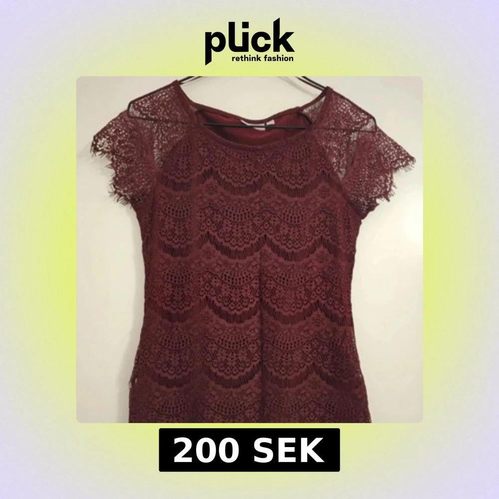 Supersöt vinröd spetstopp från KappAhl i storlek XS. Den har vackra spetsdetaljer över hela plagget och korta ärmar i spets. Den har en figurnära passform och är helfodrad förutom ärmarna som är genombrutna.
