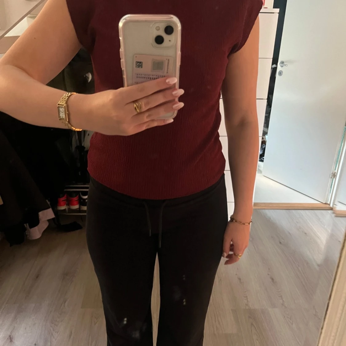 INTE MIN BILDER! Säljer en vinröd topp med struktur och hög hals. Toppen är ärmlös. Storlek S. Aldrig använd.