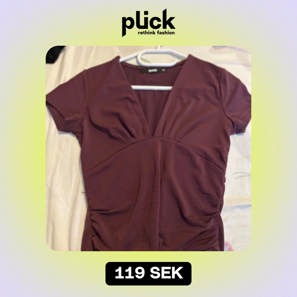 En vinröd topp med korta ärmar och v-ringning. Toppen har en åtsittande passform och är tillverkad i ett mjukt material. jättefin på💕💗