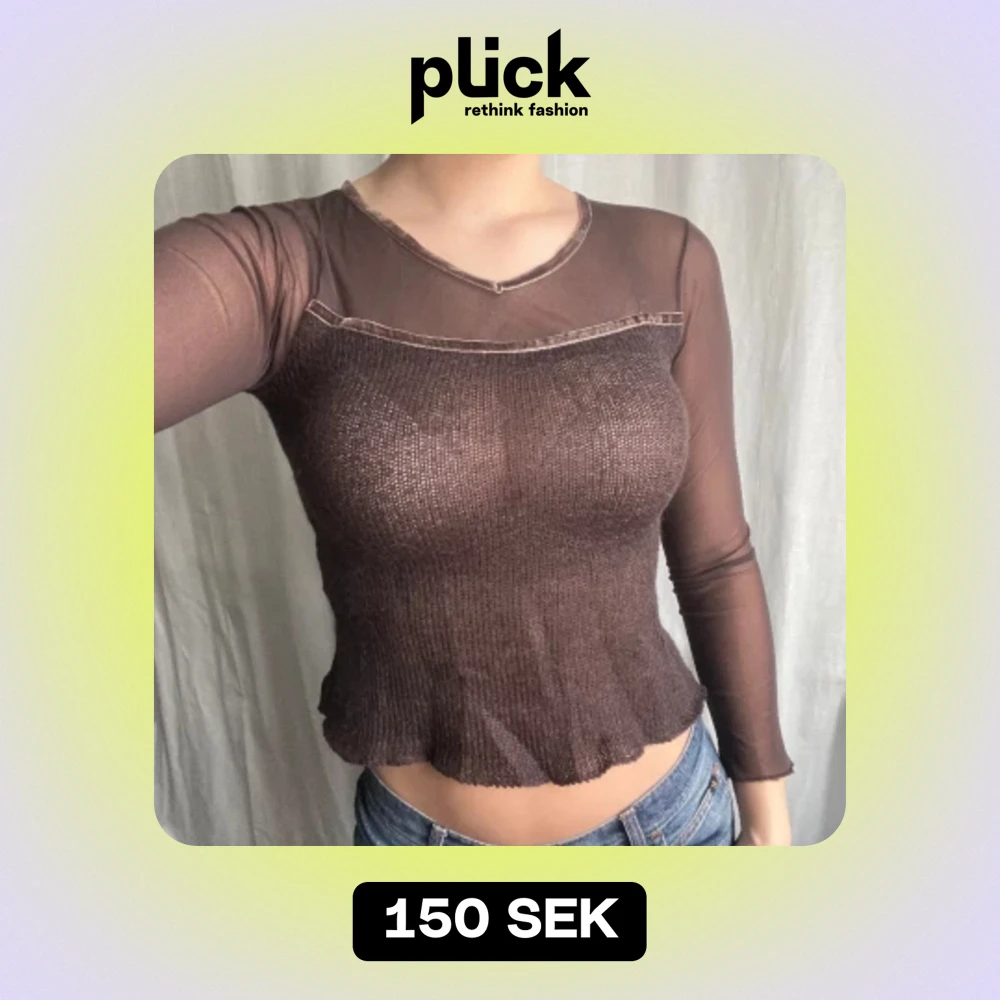 Brun vintage långärmad med meshtyg och stickad / virkad från Christelle Paris 💕