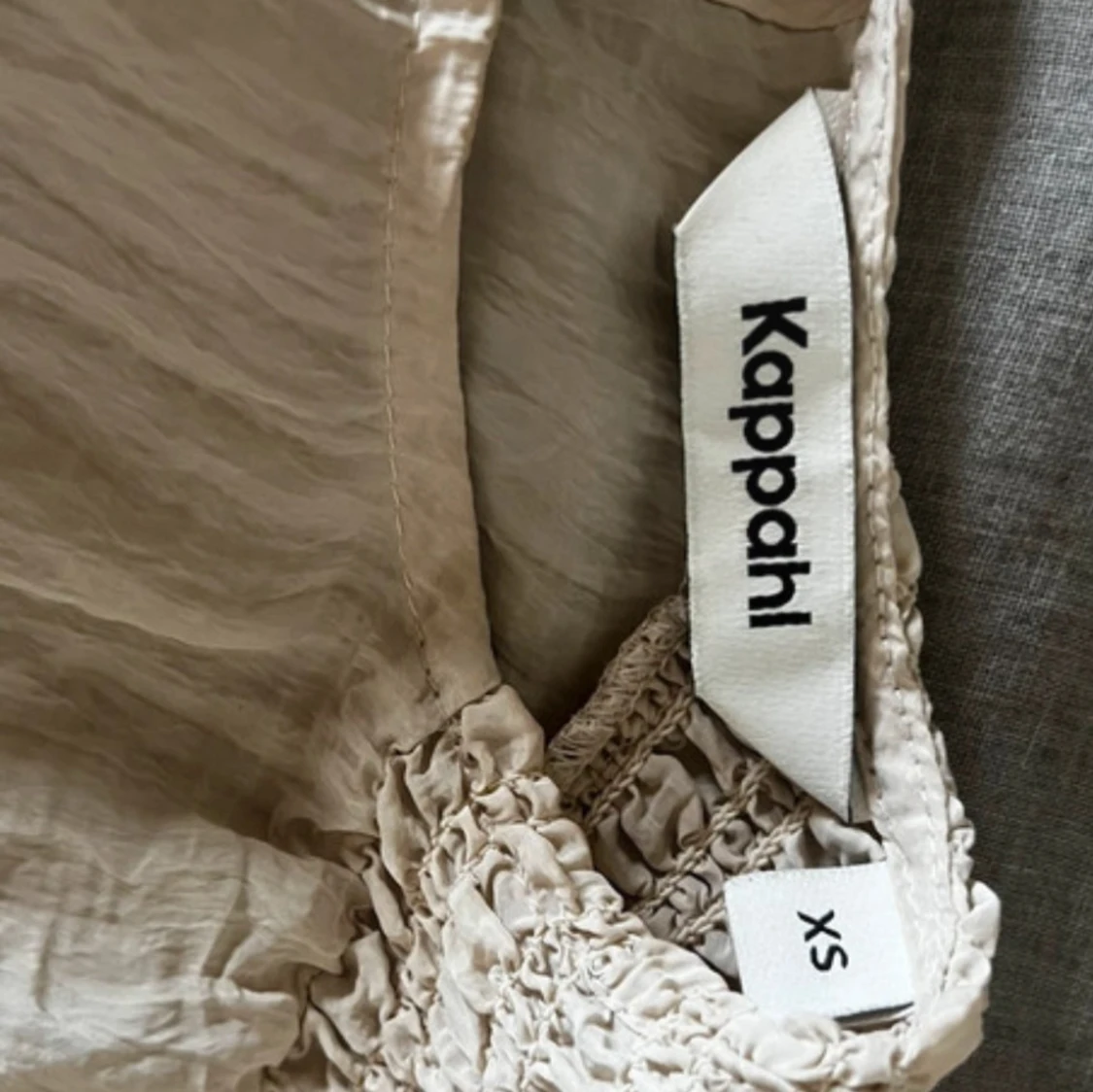 Supersöt beige blus från Kappahl i storlek XS. Toppen har smock i midjan och vid axlarna. Knappt använd!