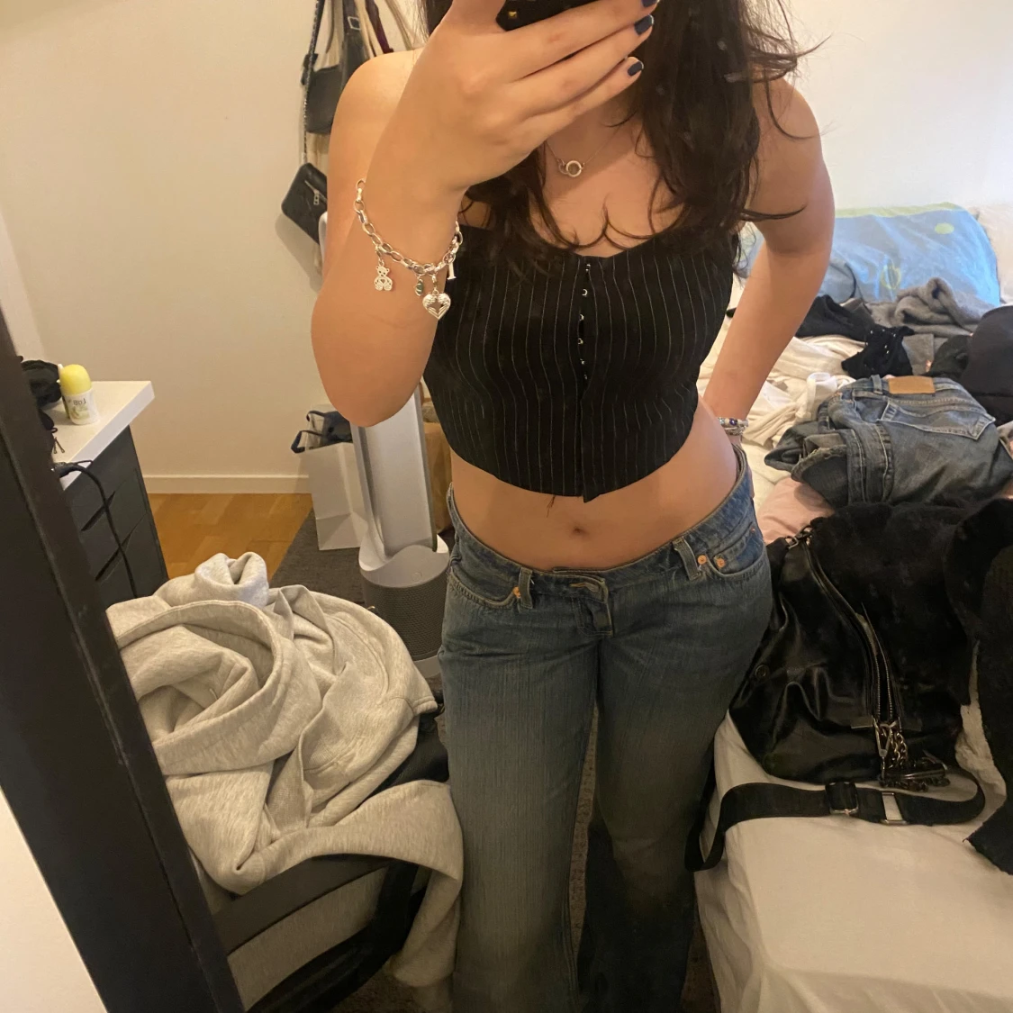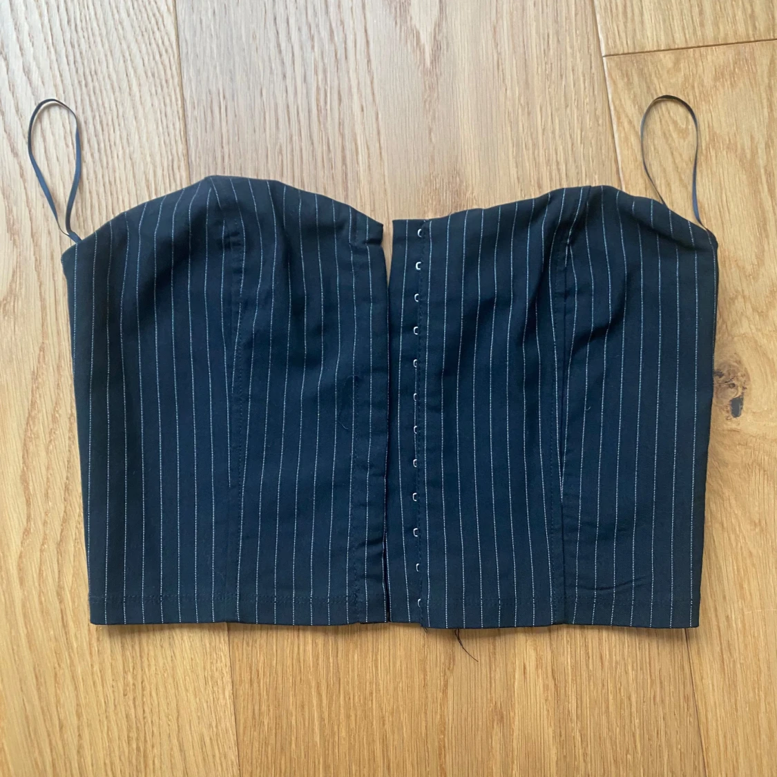 Randig korsettopp från New Yorker. Perfekt för festligare tillfällen och omfamnar kroppen fint😌 Söm som gått upp (sista bilden) men inget som märks av något vidare när man har på sig den.