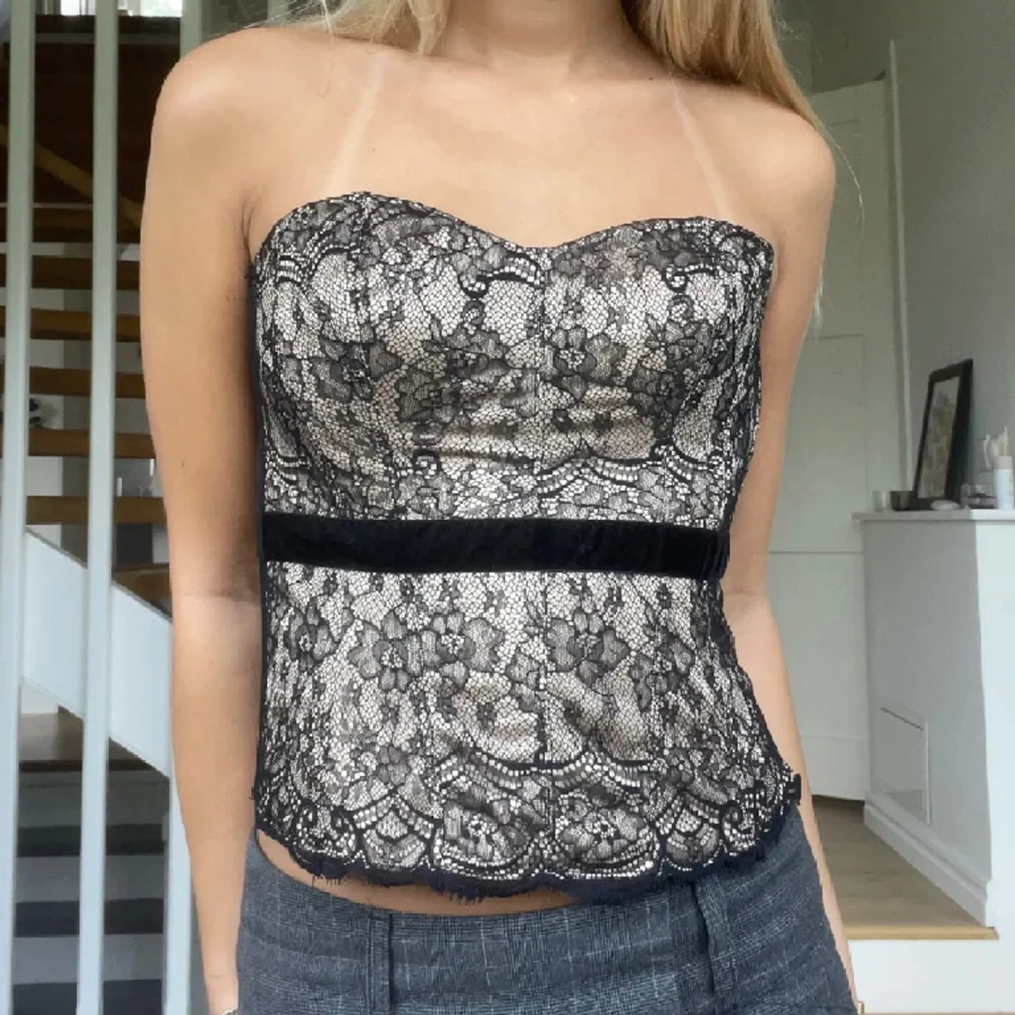 Jättesnygg korsett topp i spets i storlek s, inga defekter. 200kr+frakt