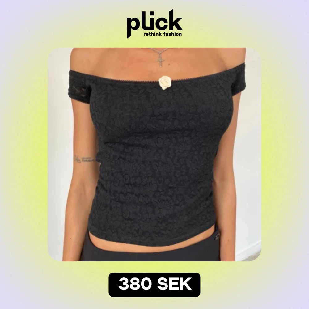 Säljer för att jag inte längre kan retunera den, aldrig använd. Off shoulder svart topp med spets/ros design. Vita rosetten åkte av. Köpt för 400kr. Kontakta vid frågor