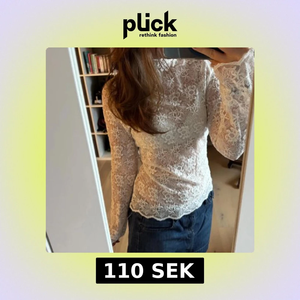 Supersöt vit blus i transparent spets med blommigt mönster och lång ärm. Blusen har hög hals med fina knappar i nacken och vågig kant nedtill. Perfekt för dig som gillar romantisk och feminin stil. Materialet är mjukt och lätt, och detaljerna gör den extra speciell.