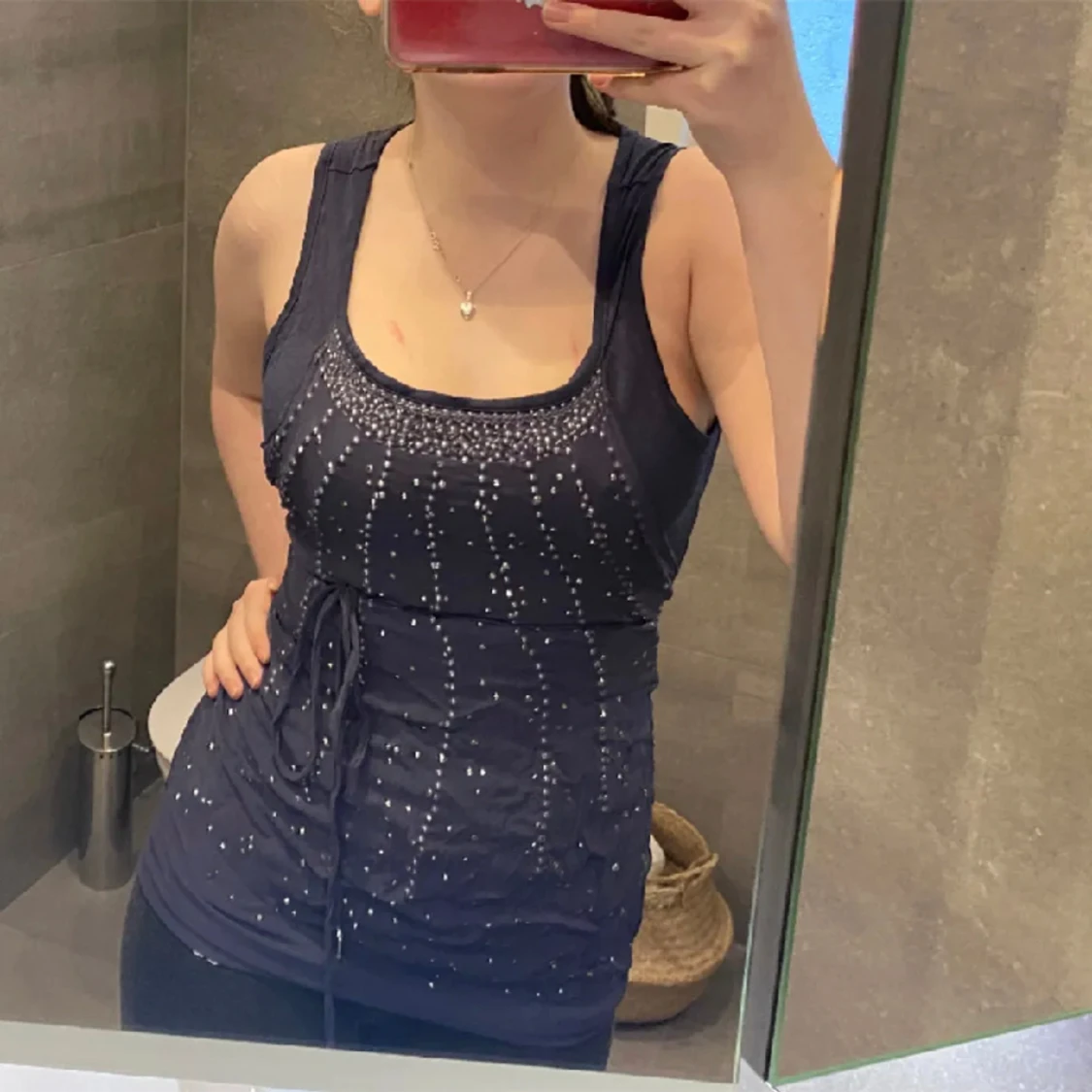 Sån fin vintage topp med knytning. Står ingen storlek men skulle gissa på S/M men går som sagt att knyta så tight man vill ha den så passar nog mindre och större också! Unikt linne i fint skick LOVE!!!