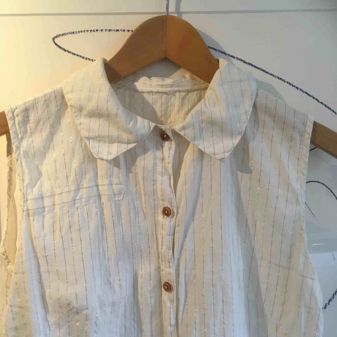 FRI FRAKT! Vit topp med guldglittriga ränder. Fin till svarta höga kostymbyxor, till exempel. Alltid mängdrabatt vid flerköp!