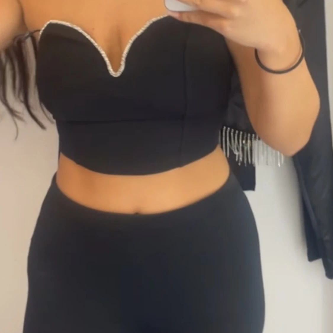 Topp utan band med glitter detaljer, endast använd vid ett tillfälle. Storlek S, 150kr🫶🏽