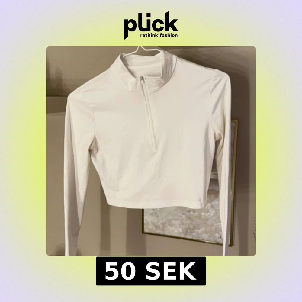 Säljer en stilren vit croppad polotopp med lång ärm och half zip framtill. Toppen har en hög krage och är tillverkad i ett mjukt, stretchigt material som ger en slim passform. Perfekt för dig som gillar minimalistisk och clean stil.