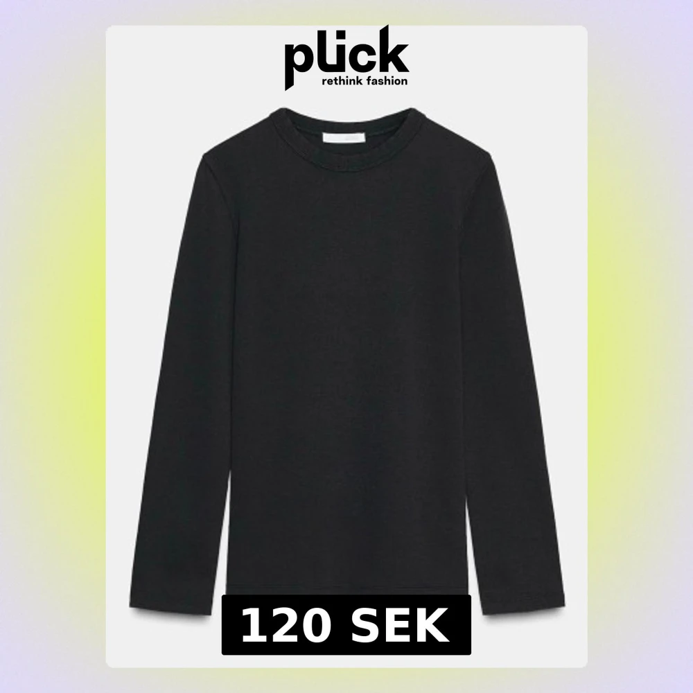 En stilren svart långärmad tröja i mjukt bomullsmaterial. Tröjan har rund halsringning och en enkel, rak passform som passar till det mesta. Perfekt som basplagg i garderoben och lätt att matcha med olika stilar. Säljer då den är för liten för mig i armarna.