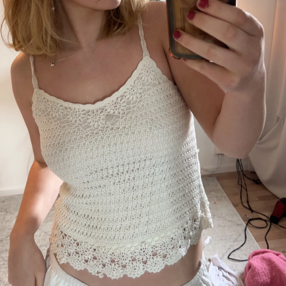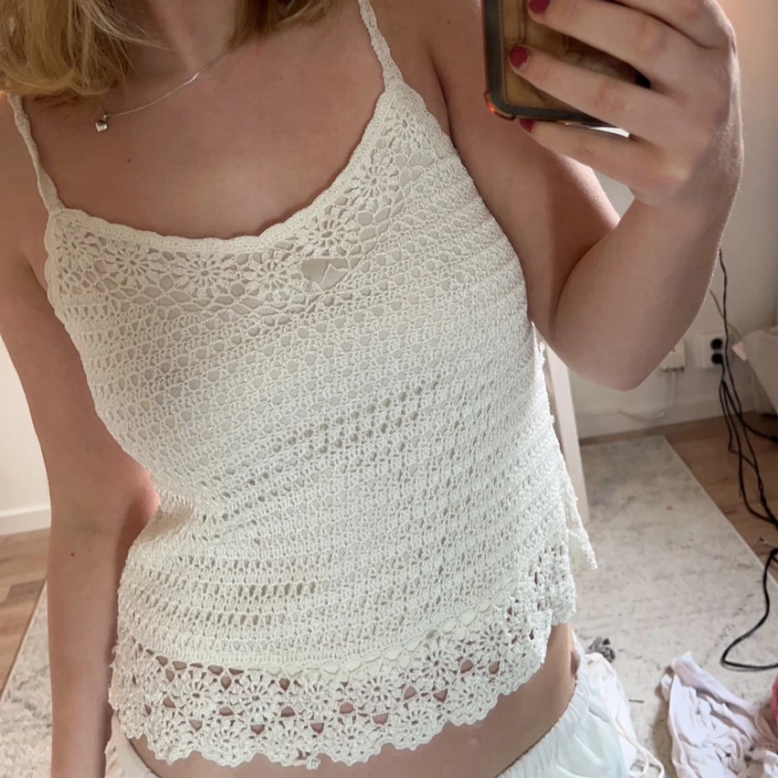 Söt virkad top strl M, men passar även S. Dock är den lite sönder framtill som syns på bilderna💕