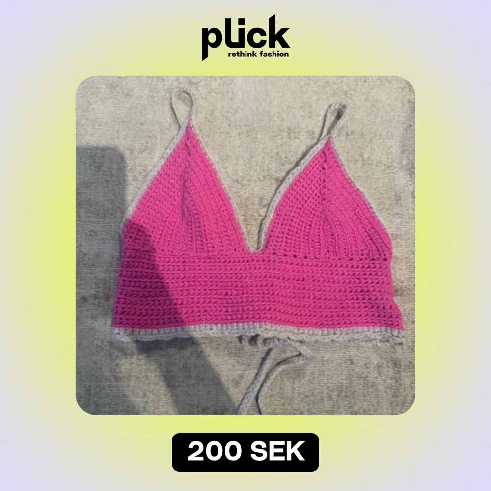 rosa virkad topp gjord av mig, passar xs-m då den går att justera banden