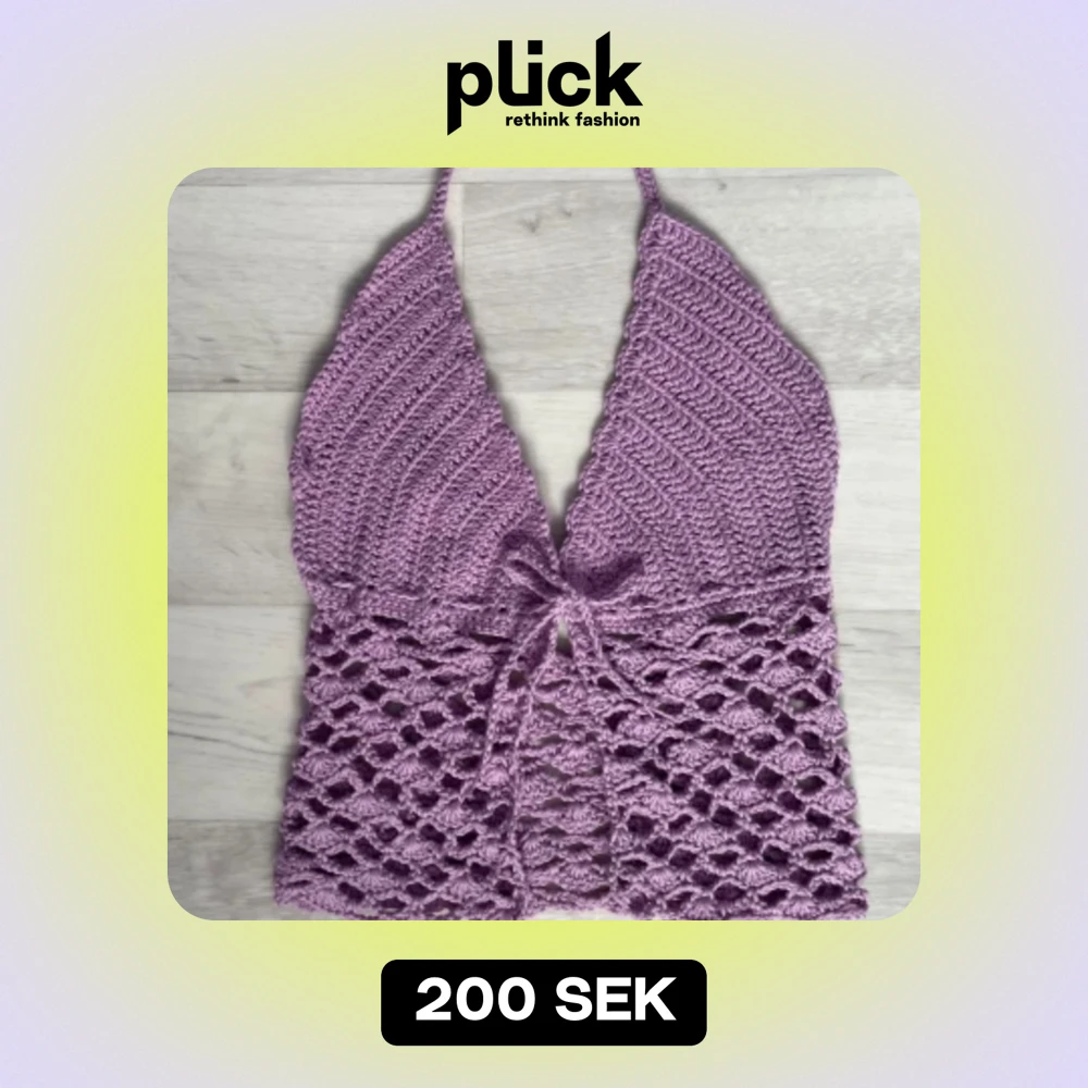 Söt Handvirkad lila topp. Perfekt för sommaren. Knytning där fram, öppen rygg. Kan göras i annan färg, skriv privat. Skriv för fler mått/ bilder!
