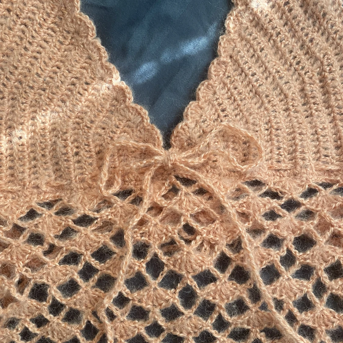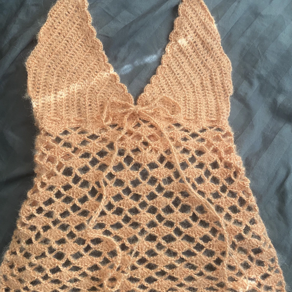 Säljer denna söta virkade topp med öppen rygg som jag gjort själv! Det är i mohair garn (vet inte om det är äkta mohair eller fake)