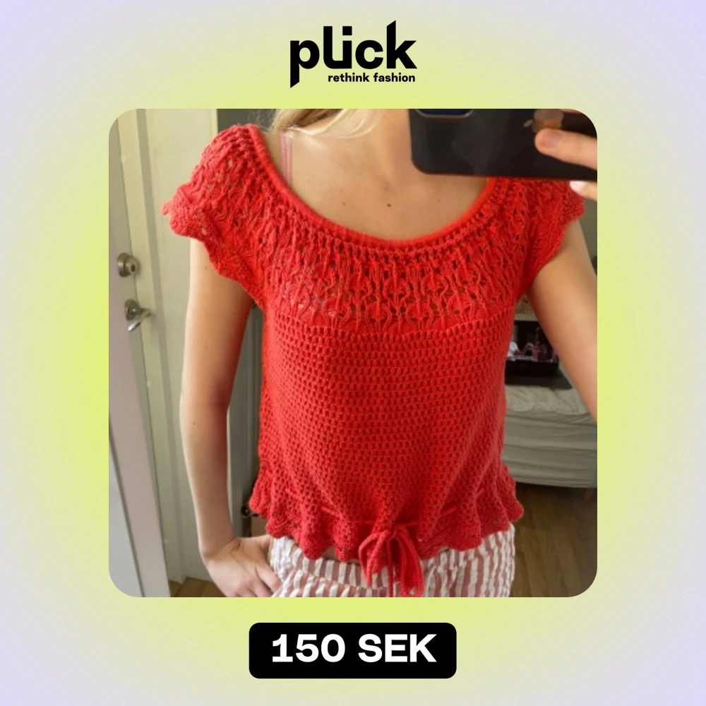 Snygg virkad topp som går att knyta i fin korall/röd färg!❤️🔥 passar även mindre storlekar