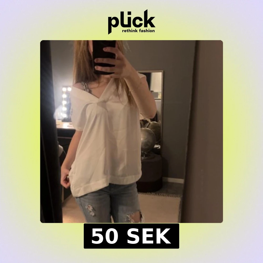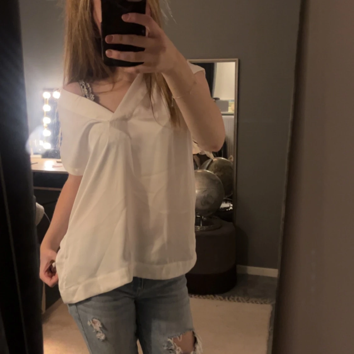 Säljer en stilren vit ärmlös blus med v-ringning. Tröjan har inga defekter och används tyvärr inte.