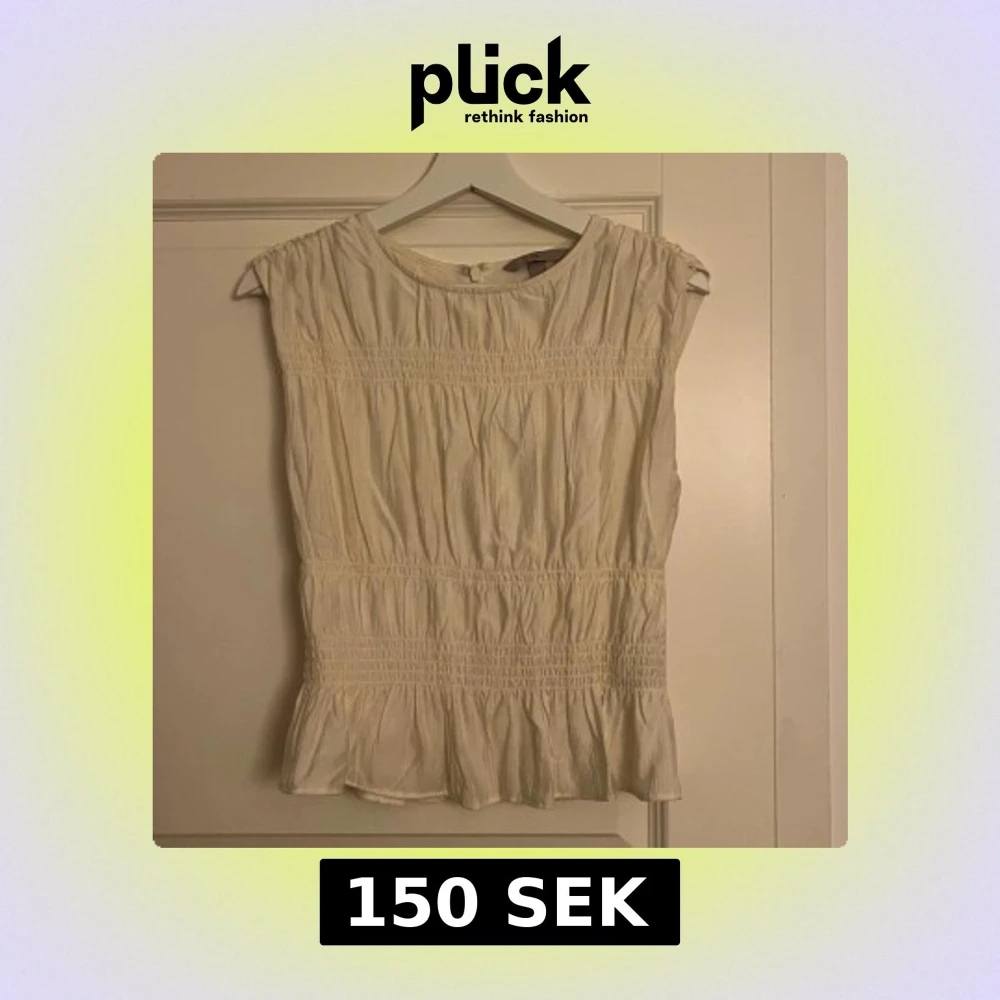 Söt krämvit blus från H&M med smockdetaljer och volang nedtill, använd fåtal gånger så i väldigt bra skick