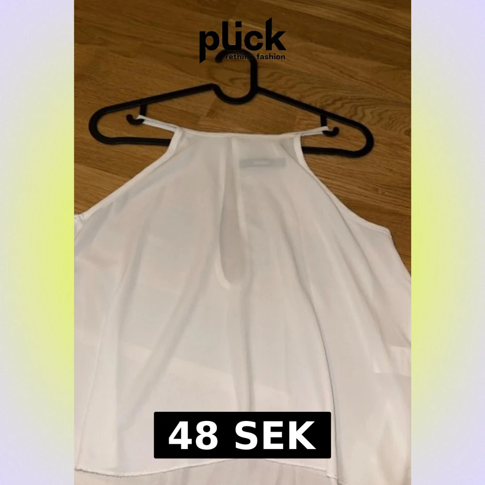 Säljer en stilren vit linnetopp från Bik Bok i storlek S. Toppen är ärmlös med smala axelband och har en flowy, lätt transparent look. Materialet känns mjukt och svalt, perfekt för varma dagar. Enkel design med rundad hals och rak passform.
