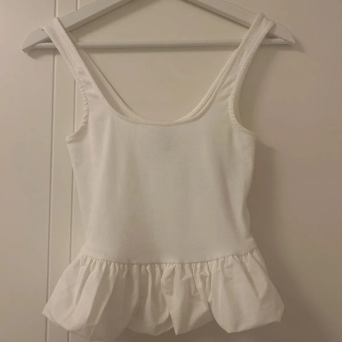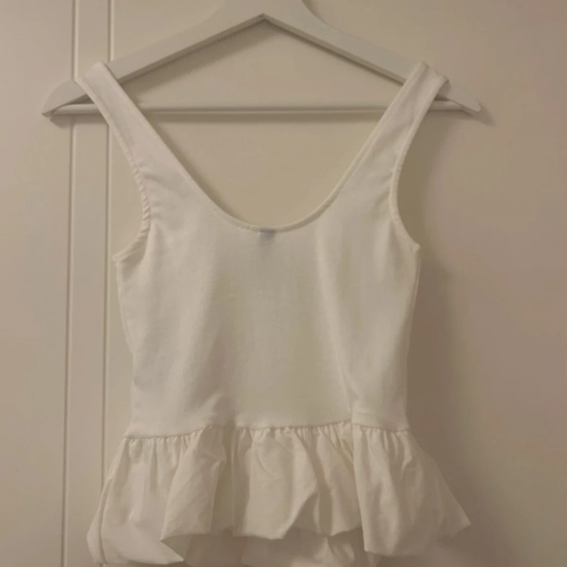 Supersöt vit linnetopp med volang nertill. såå söt, skriv om du har några frågor💗