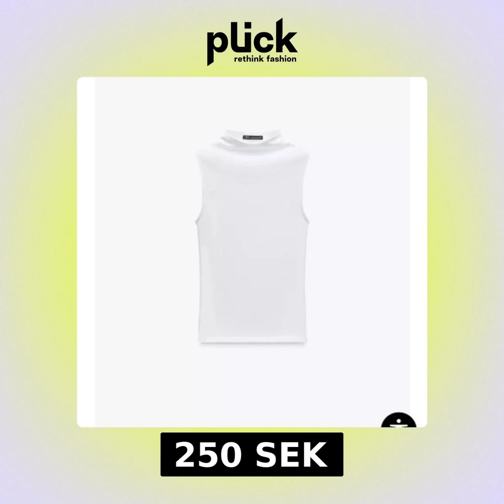 Säljer en stilren vit ärmlös polotopp med hög hals. Toppen har en tight passform och är perfekt att styla till olika outfits. Den e vit de va annan färg på tröjan på model hade på sig den,helt ny säljer för den inte va min still.