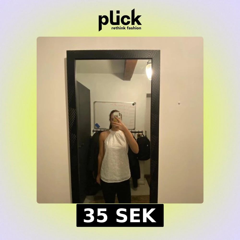 Säljer en stilren vit ärmlös topp med halterneck-design. Perfekt för varma dagar eller som ett lager under en kavaj. Enkel och elegant stil som passar till många olika outfits. Från SHEIN men har väldigt bra material för att vara SHEIN