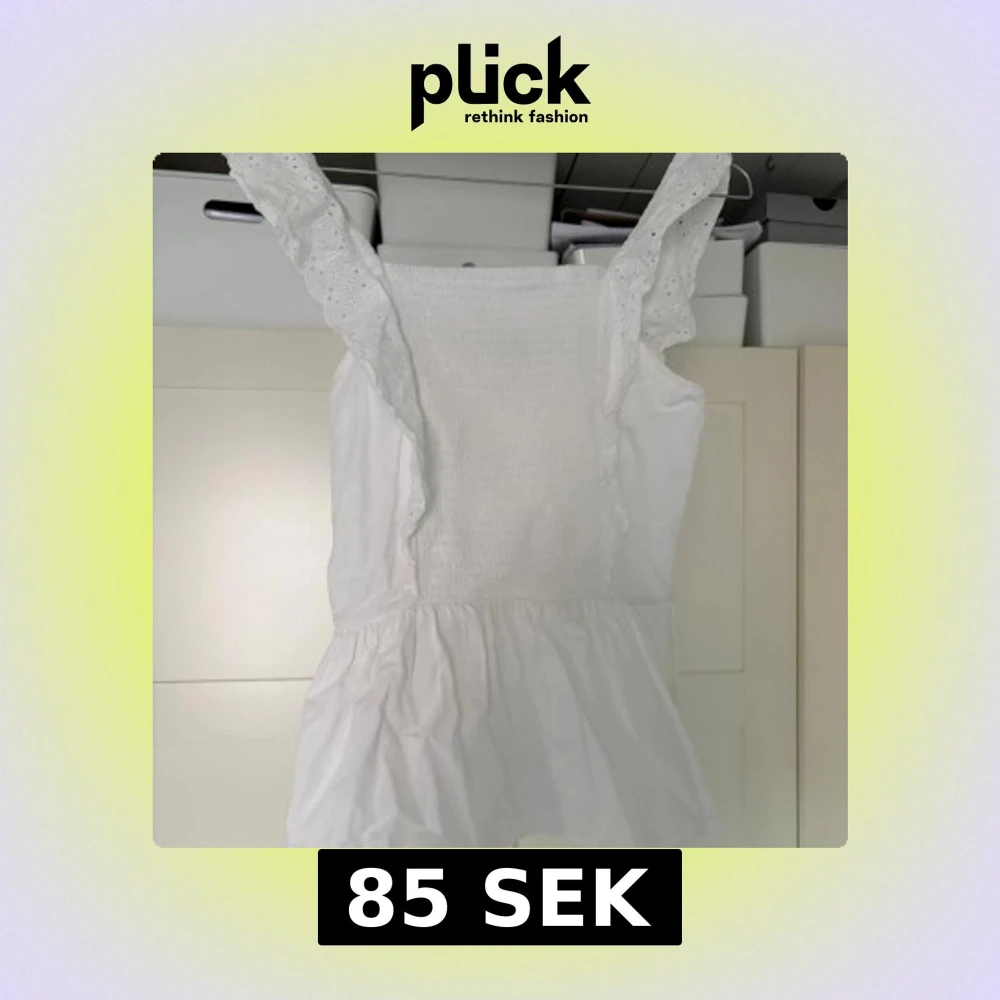 Säljer en söt vit ärmlös topp från Woom (cubus) Toppen har en smockad överdel och volangdetaljer vid axlarna. Perfekt för varma sommardagar! 🌞 storleken är som xs/s
